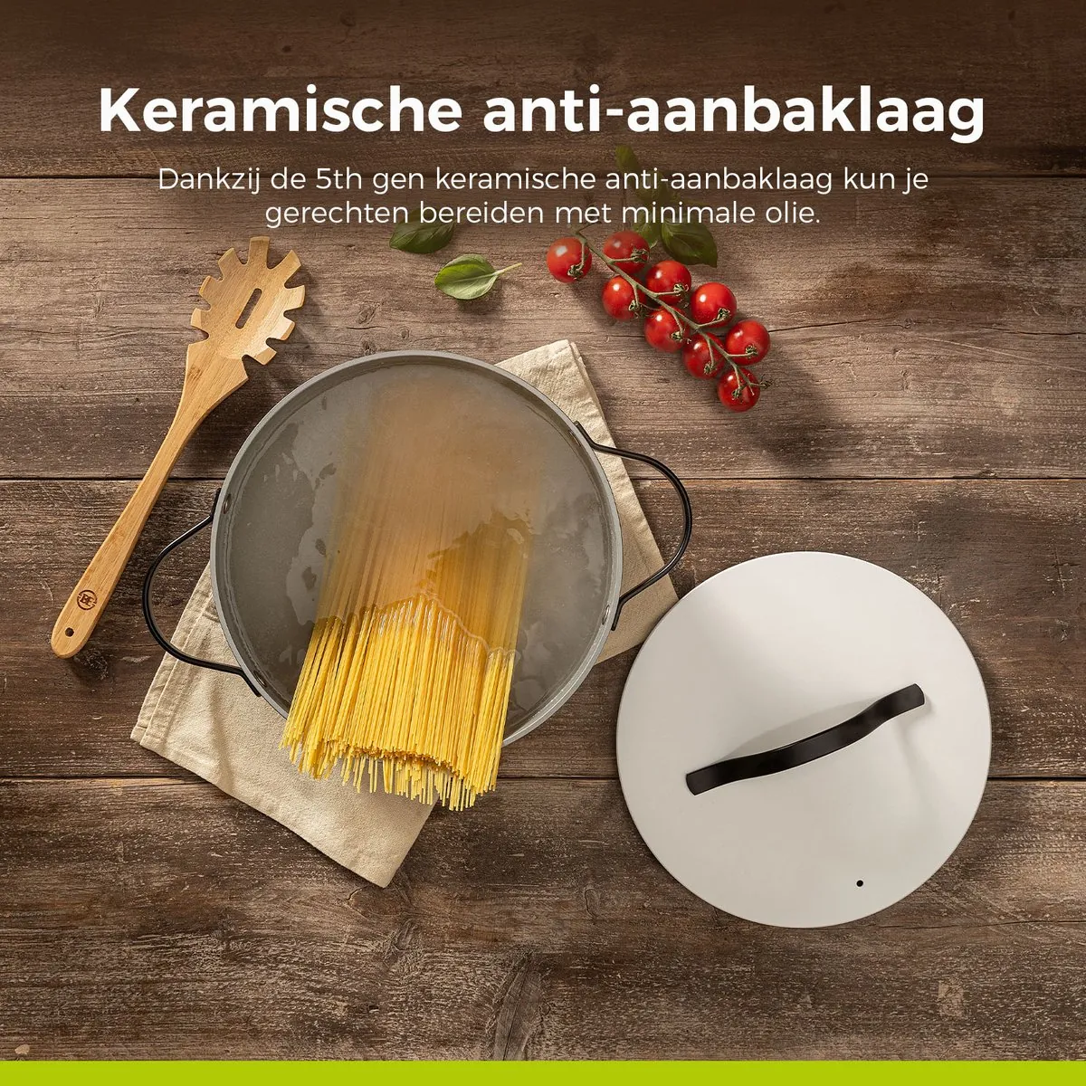 De 5th gen keramische anti-aanbaklaag biedt uitzonderlijke kookprestaties. Dankzij deze geavanceerde technologie kun je gerechten bereiden met minimale olie en gemakkelijk schoonmaken, waardoor koken plezierig en moeiteloos wordt.