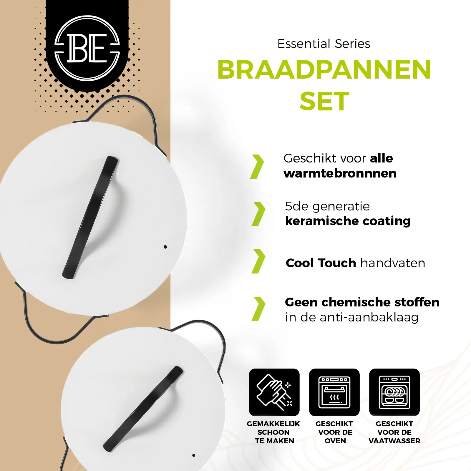 BE Living presenteert een 24 en 28 cm zwarte braadpannenset, perfect voor alle warmtebronnen inclusief inductie én vrij van PFAS. Een essentiële aanwinst voor iedere moderne keuken.