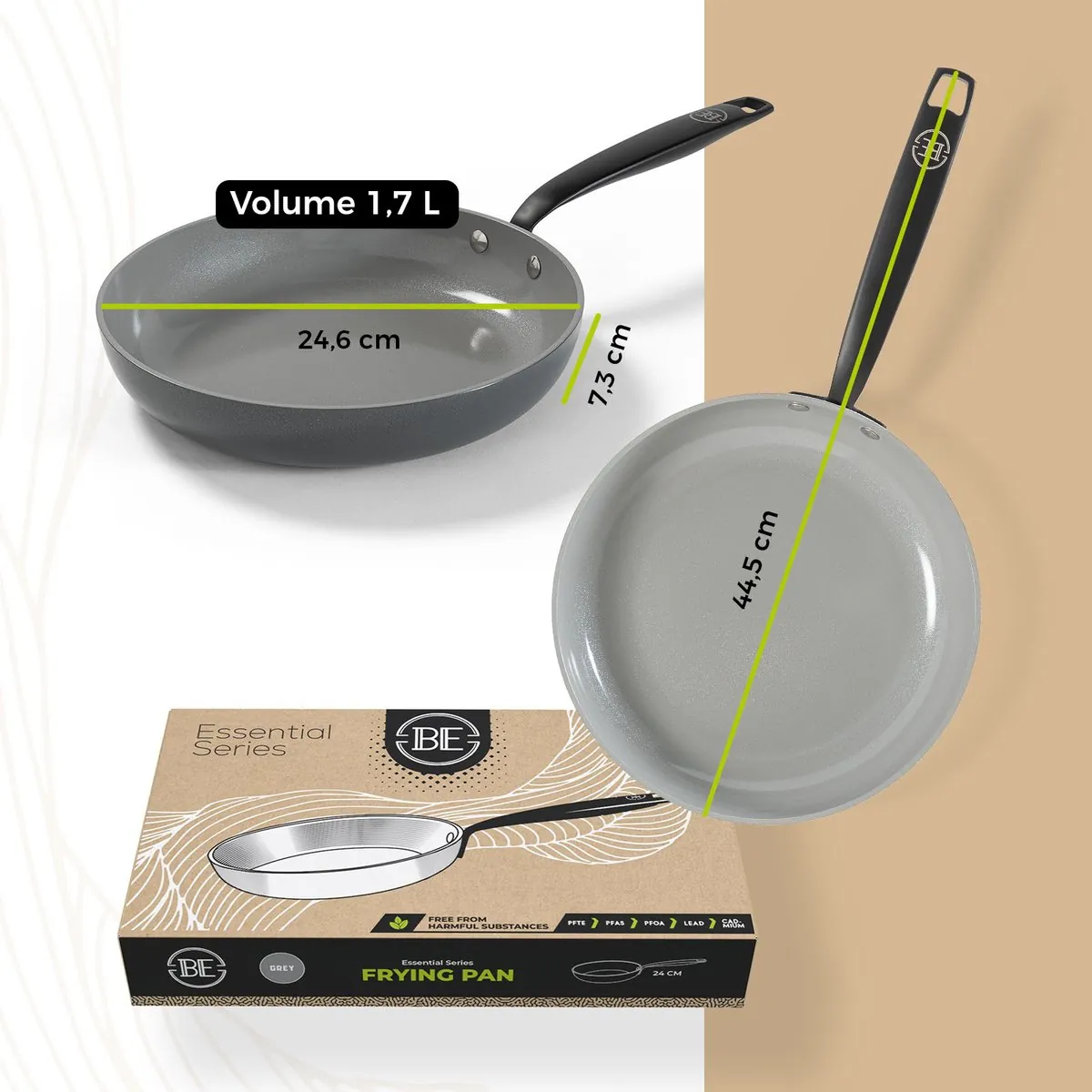 BE Living presenteert een 24 cm grijze koekenpan, perfect voor alle warmtebronnen inclusief inductie én vrij van PFAS. Een essentiële aanwinst voor iedere moderne keuken.