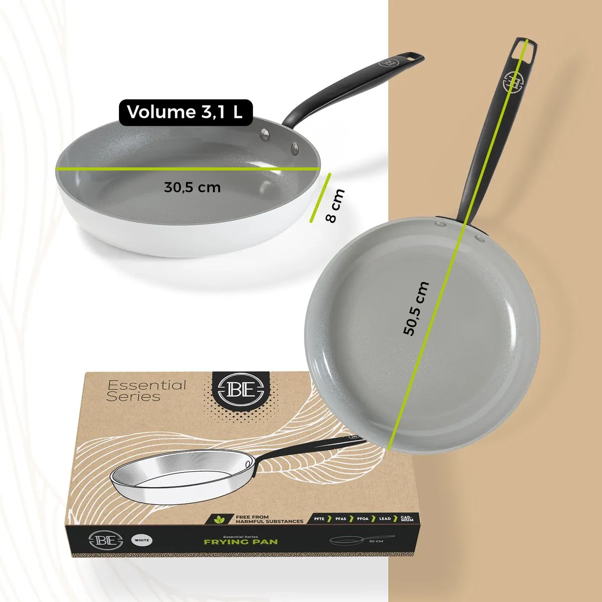 De BE Living koekenpan presenteert een 30 cm witte koekenpan, perfect voor alle warmtebronnen inclusief inductie én vrij van PFAS. Een essentiële aanwinst voor iedere moderne keuken.