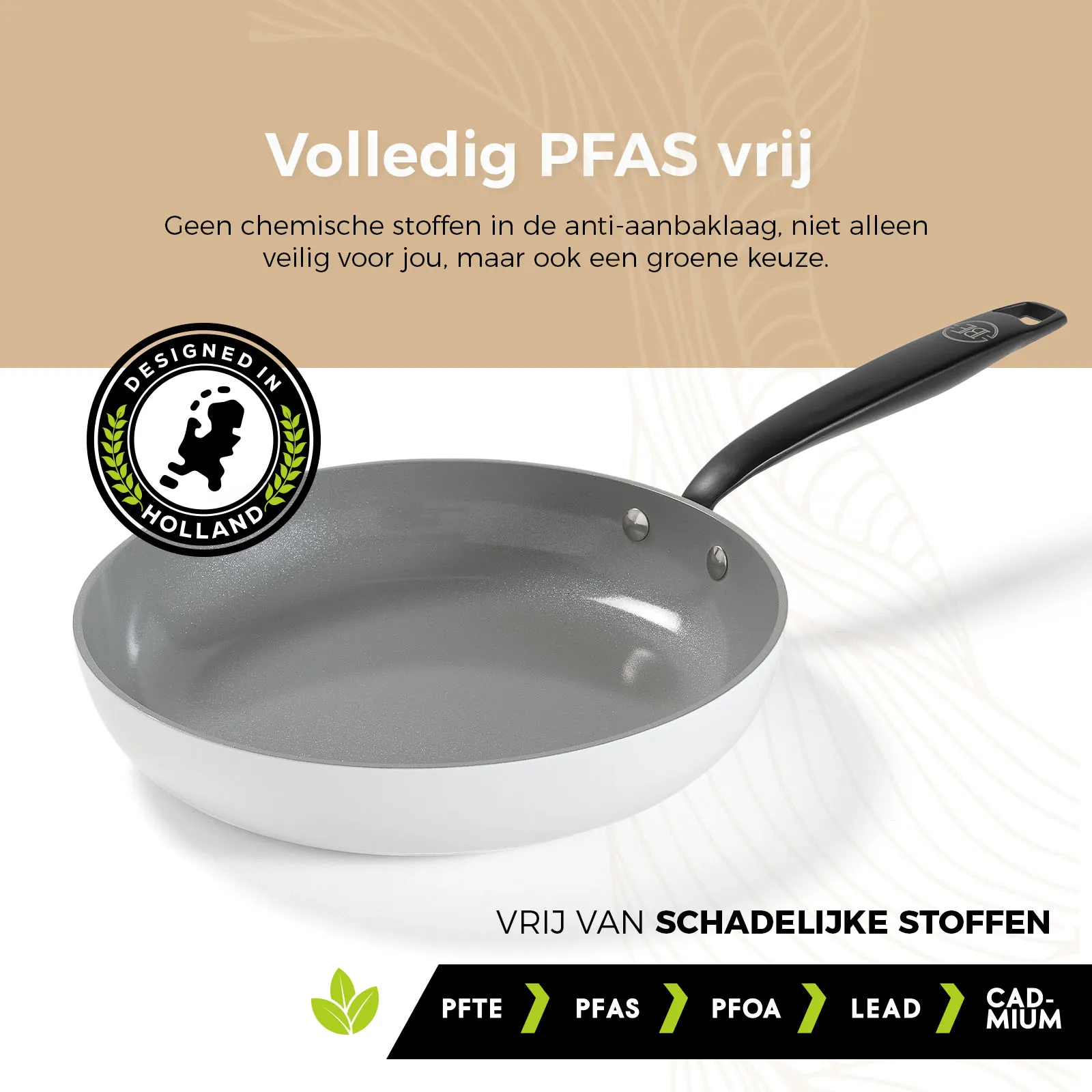 De pannen van BE Living zijn volledig vrij van PFAS, wat betekent dat je met een gerust hart kunt koken zonder schadelijke chemicaliën die in sommige anti-aanbaklagen worden aangetroffen. Dit maakt ze niet alleen veilig voor jou, maar ook een groene keuze.