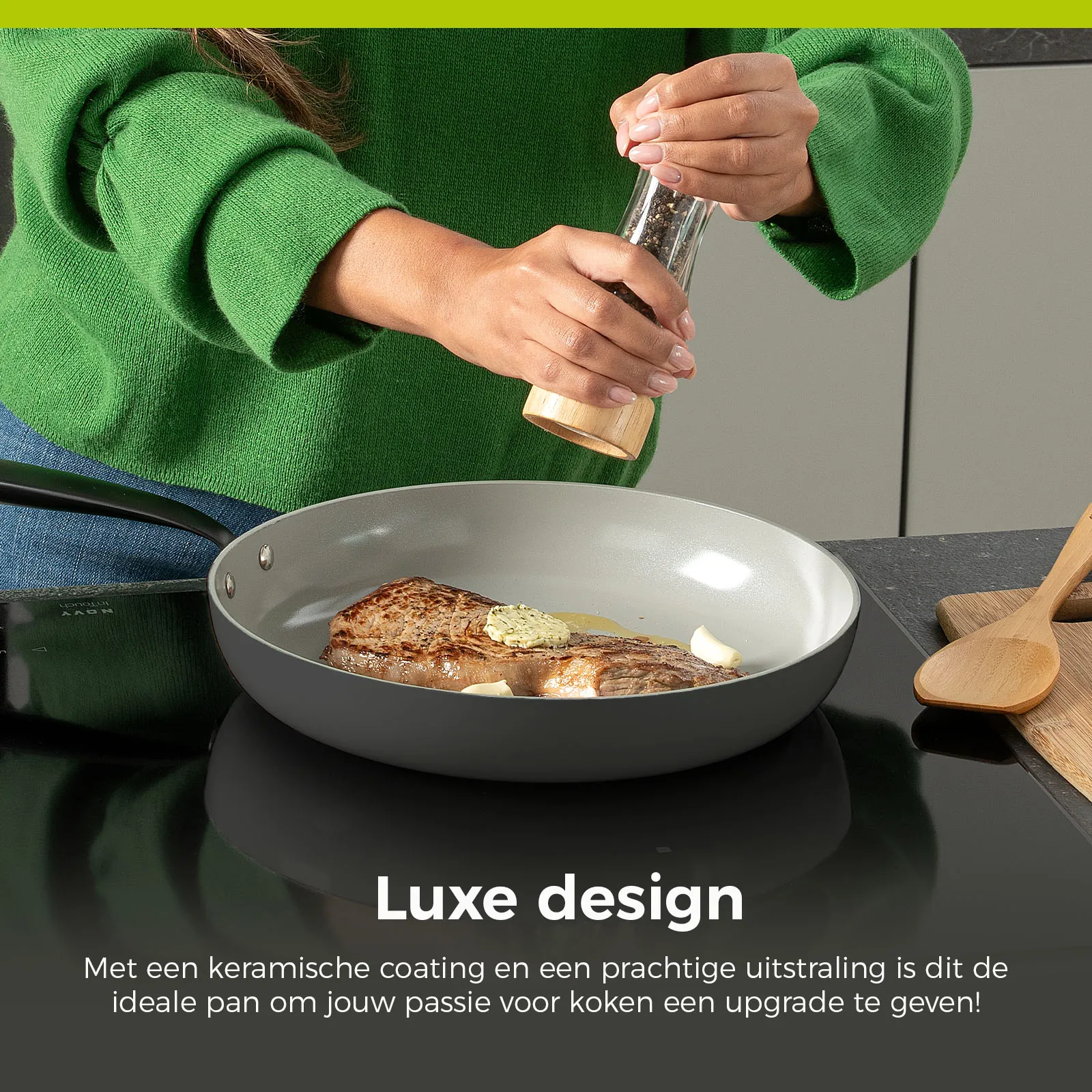 Met een keramische coating en een prachtige uitstraling is dit de ideale pannenset om jouw passie voor koken een upgrade te geven!