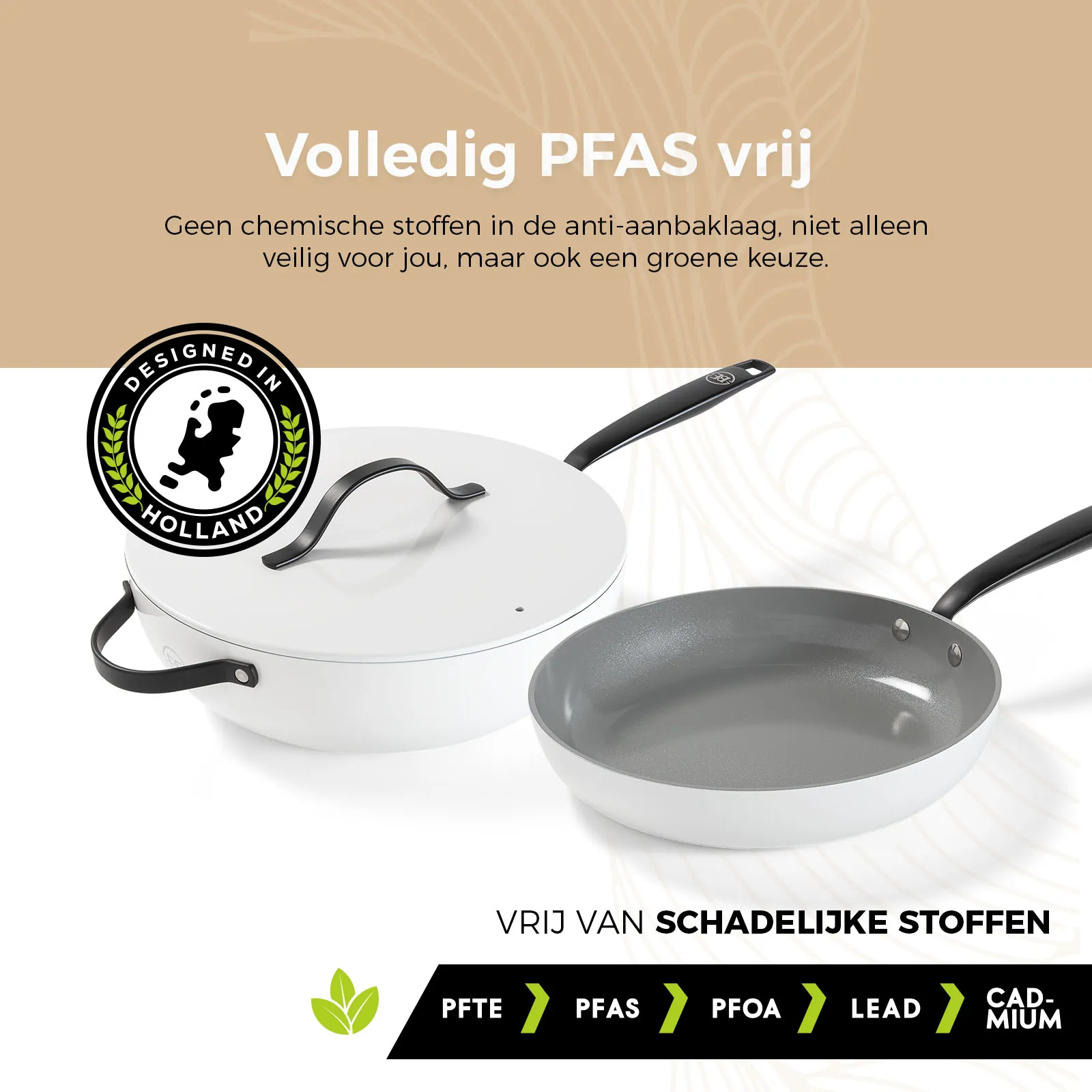 De pannen van BE Living zijn volledig vrij van PFAS, wat betekent dat je met een gerust hart kunt koken zonder schadelijke chemicaliën die in sommige anti-aanbaklagen worden aangetroffen. Dit maakt ze niet alleen veilig voor jou, maar ook een groene keuze.