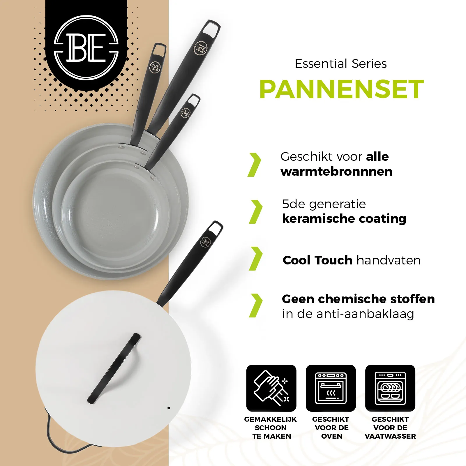 Ontdek BE Living: waar innovatie en stijl samenkomen. Onze pannen zijn ontworpen voor ultiem kookgemak op alle warmtebronnen, met een luxe design en een geavanceerde 5de graads keramische coating voor optimale anti-aanbakeigenschappen. Voorzien van cool touch handvaten en volledig PFAS-vrij, bieden wij gezonde kookoplossingen zonder compromissen op kwaliteit of veiligheid.