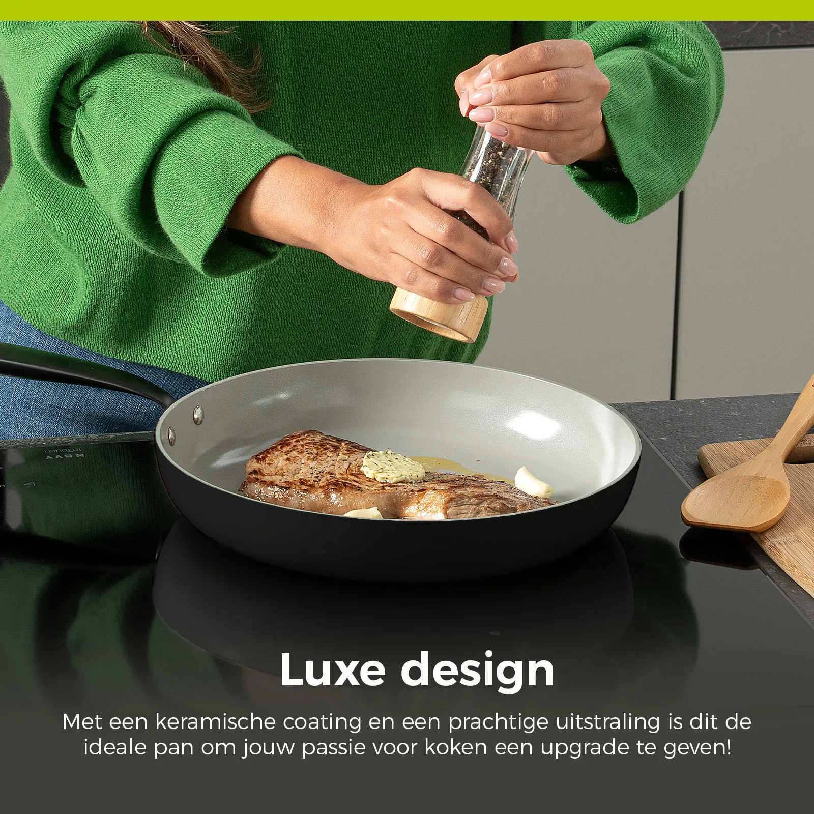 Met een keramische coating en een prachtige uitstraling is dit de ideale pannenset om jouw passie voor koken een upgrade te geven!