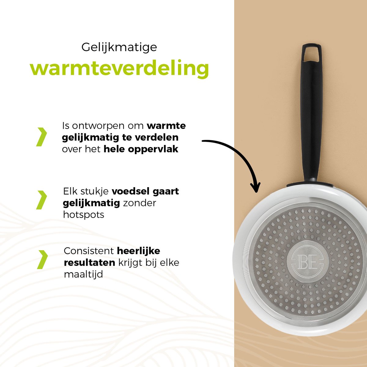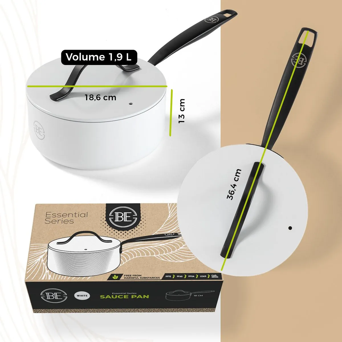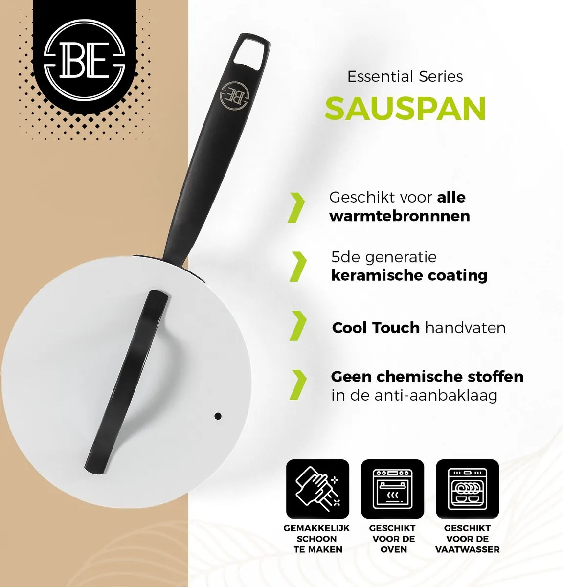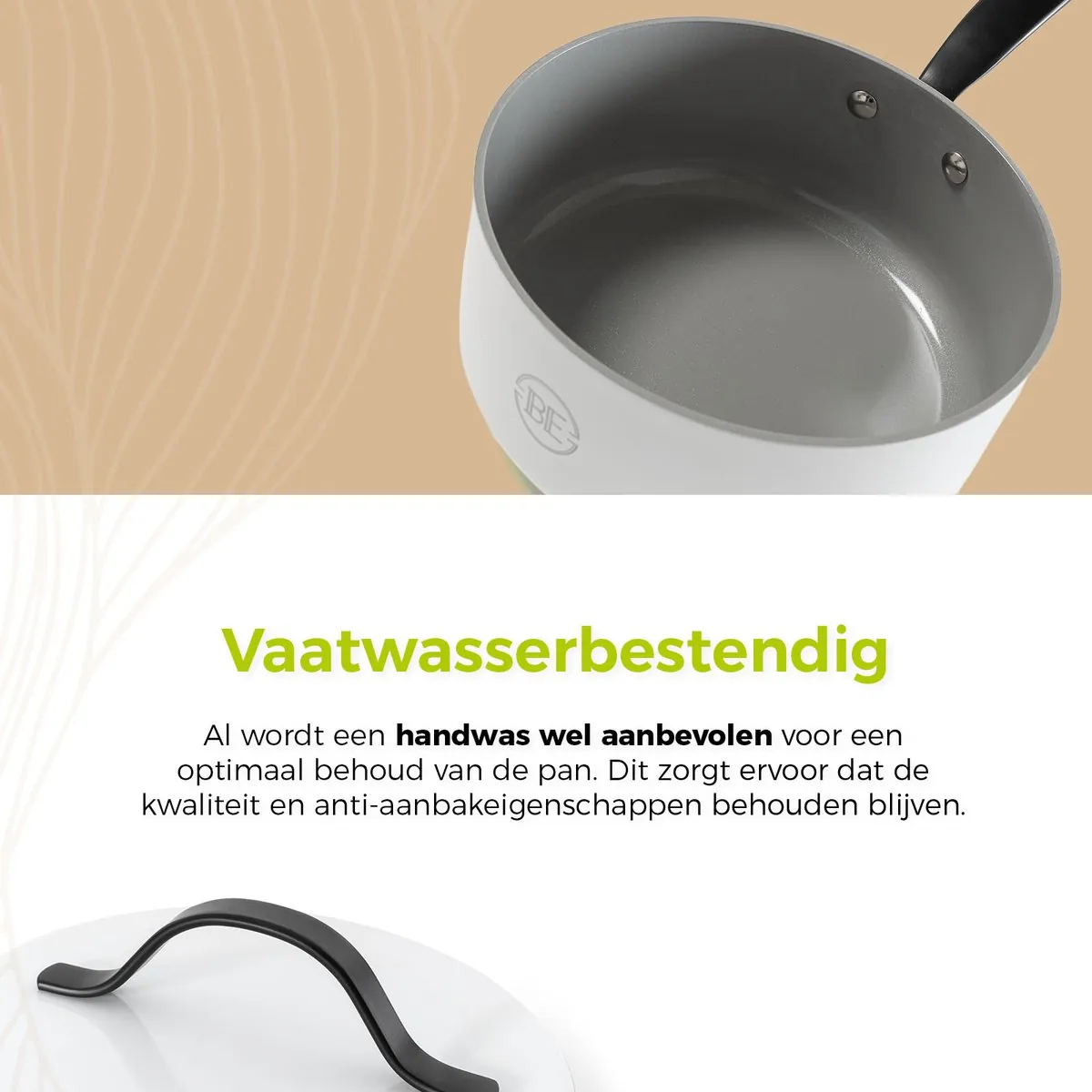 BE Living presenteert een 18 cm witte sauspan, perfect voor alle warmtebronnen inclusief inductie én vrij van PFAS. Een essentiële aanwinst voor iedere moderne keuken.