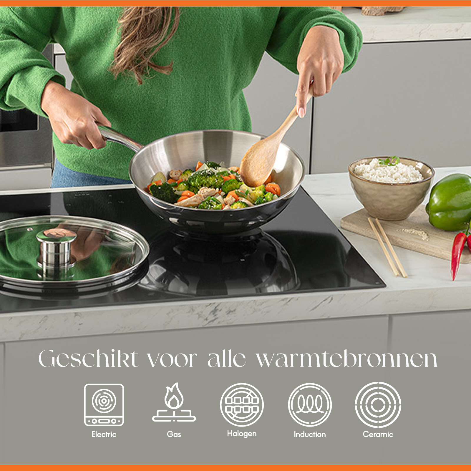 De pannen van ELLE Gourmet zijn compatibel met alle warmtebronnen. Dit maakt de pannen uiterst veelzijdig en perfect voor elke keuken, zodat je moeiteloos kunt schakelen tussen verschillende kookmethodes zonder extra kookgerei nodig te hebben.
