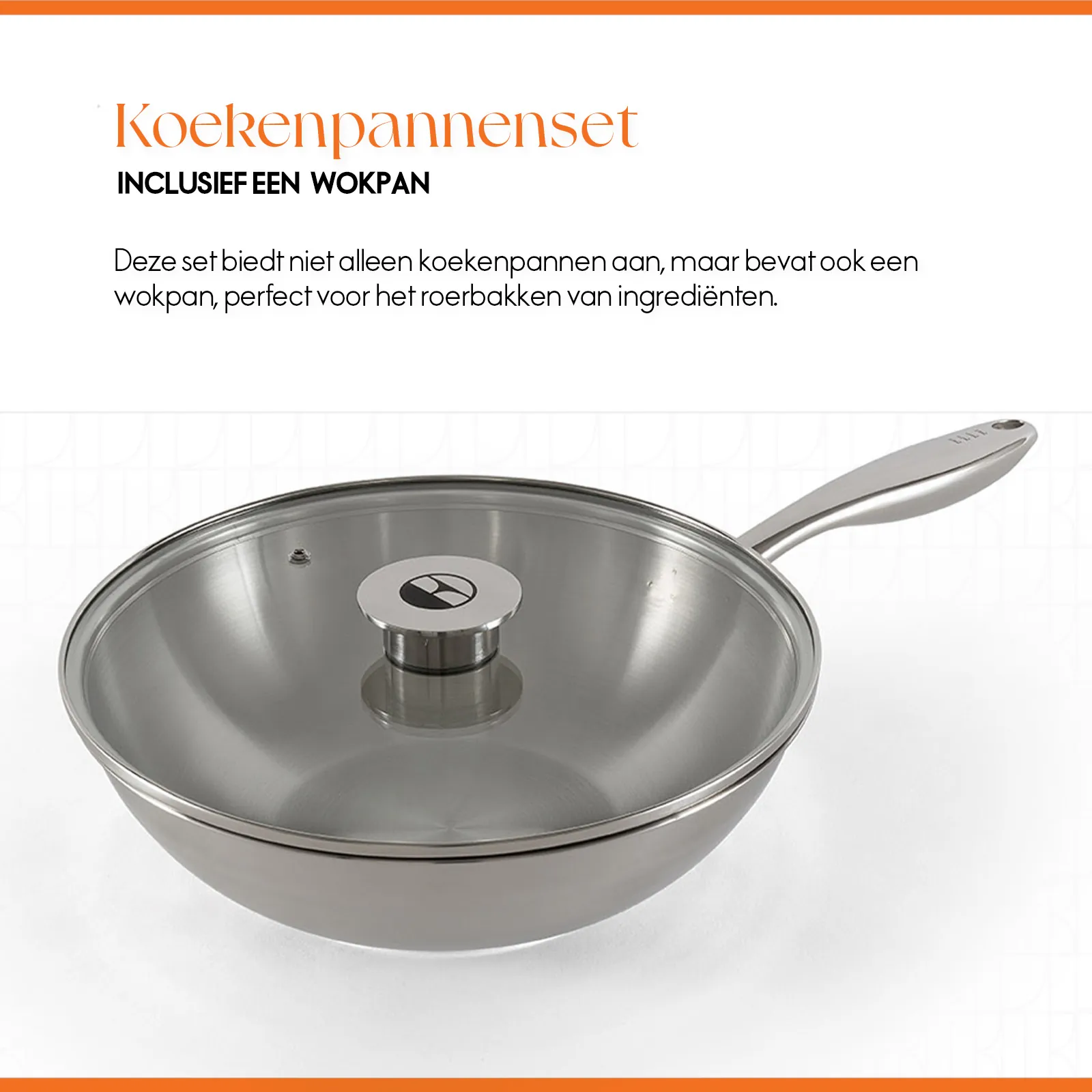 ELLE Gourmet presenteert een 5-delige pannenset, perfect voor alle warmtebronnen inclusief inductie én vrij van PFAS. Een essentiële aanwinst voor iedere moderne keuken.