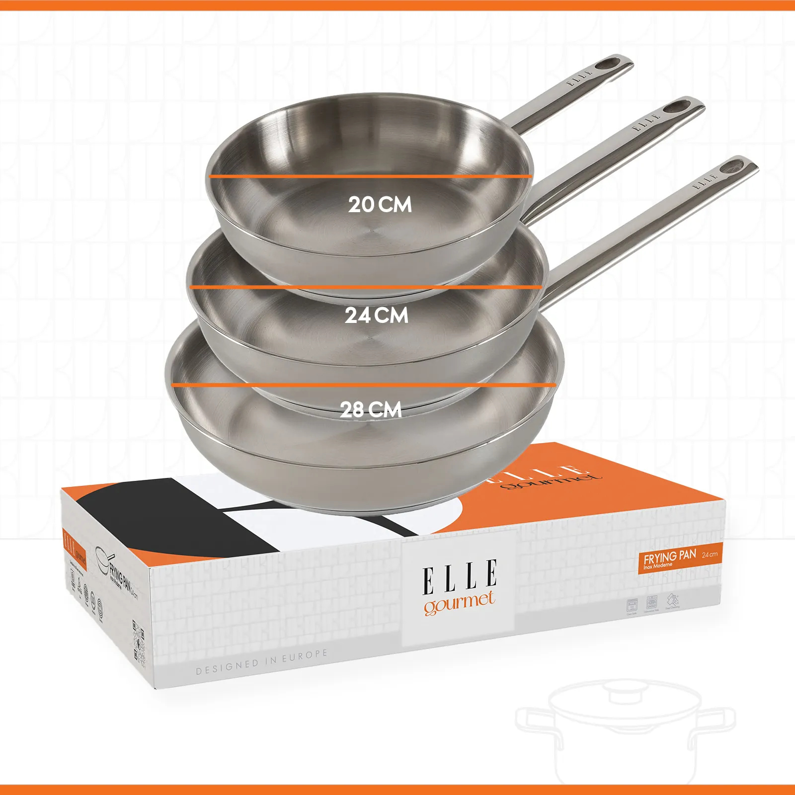 ELLE Gourmet presenteert een Ø20, 24 en 28 cm koekenpannenset, perfect voor alle warmtebronnen inclusief inductie én vrij van PFAS. Een essentiële aanwinst voor iedere moderne keuken.