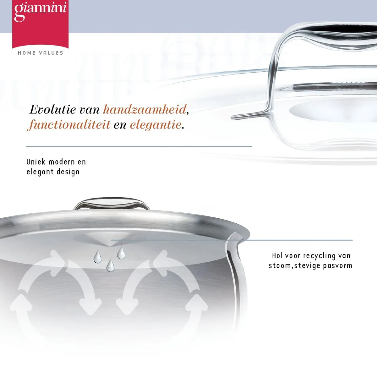 De pannendeksel van Giannini LaBond heeft een elegant en modern design dat elke pan aanvult. Het moderne uiterlijk maakt het niet alleen functioneel, maar ook een aantrekkelijke toevoeging aan je keuken, waarmee je koken tot een visueel plezier maakt.