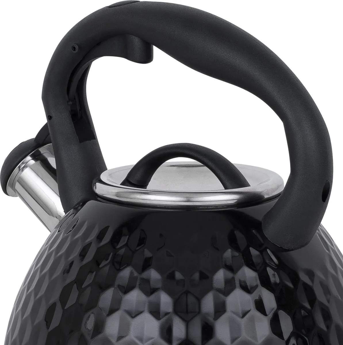 Speciale hittebestendige oppervlaktecoating Aangezien u uw fluitketel dag in dag uit zult gebruiken, wilt u er zeker van zijn dat u kunt vertrouwen op een robuuste en betrouwbare partner. Daarom hebben wij ervoor gezorgd dat deze fluitketel is uitgerust met een speciale hittebestendige oppervlaktecoating, met 3D-effect bodydesign, waardoor hij bestand is tegen de dagelijkse slijtage en duurzaamheid gegarandeerd is. Kies voor onze fluitketel en geniet van de gemoedsrust die hij biedt, wetende dat hij is gebouwd om lang mee te gaan.