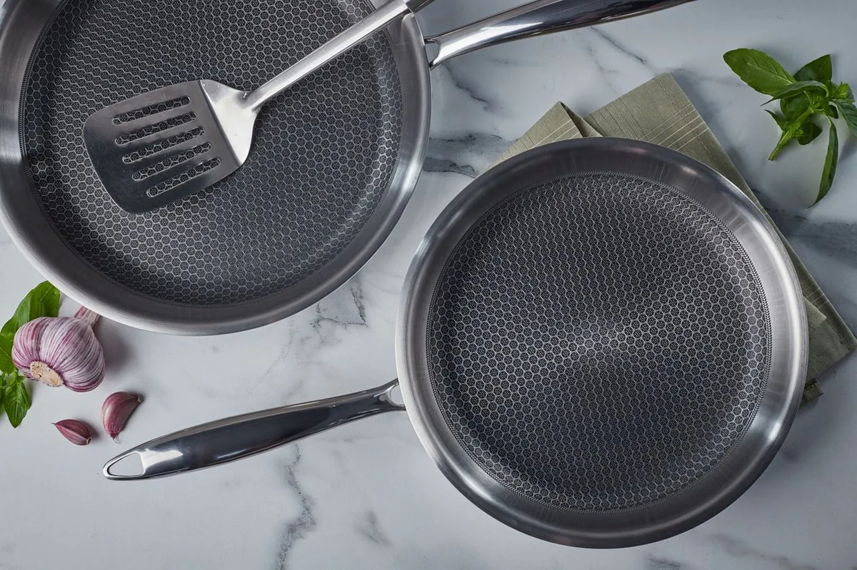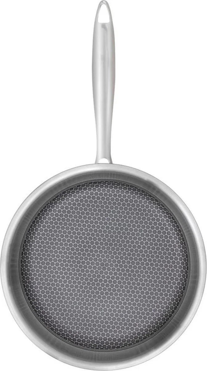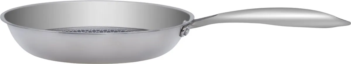 TRI-PLY (18/10 roestvrij staal + aluminium + 18/10 roestvrij staal) Door een Starburst-afwerking aan de binnenkant van de pan blijft voedsel niet plakken. RVS is ideaal voor het bakken, schroeien en sauteren van voedsel. De volle, zware aluminium kern die over de bodem en langs de zijkanten van de pan loopt, zorgt voor een optimale warmteverdeling voor perfecte kookresultaten. De roestvrijstalen buitenkant maakt de pan geschikt voor de vaatwasser en de oven. Tevens zorgt het voor gemakkelijke reiniging en onderhoud. Met deze hoogwaardige pan heb je de perfecte aanvulling op je keuken en kan je elke keer genieten van heerlijke maaltijden.