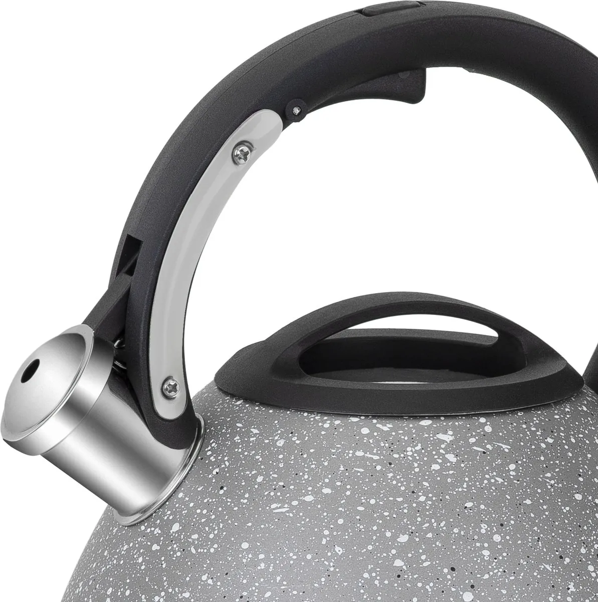 Aangezien u uw fluitketel dag in dag uit zult gebruiken, wilt u er zeker van zijn dat u kunt vertrouwen op een robuuste en betrouwbare partner. Daarom hebben wij ervoor gezorgd dat deze fluitketel is uitgerust met een speciale hittebestendige marmeren oppervlaktecoating, waardoor hij bestand is tegen de dagelijkse slijtage en duurzaamheid gegarandeerd is. Kies voor onze fluitketel en geniet van de gemoedsrust die hij biedt, wetende dat hij is gebouwd om lang mee te gaan.