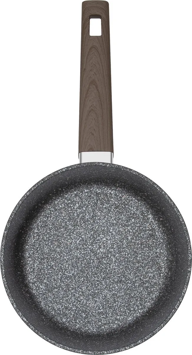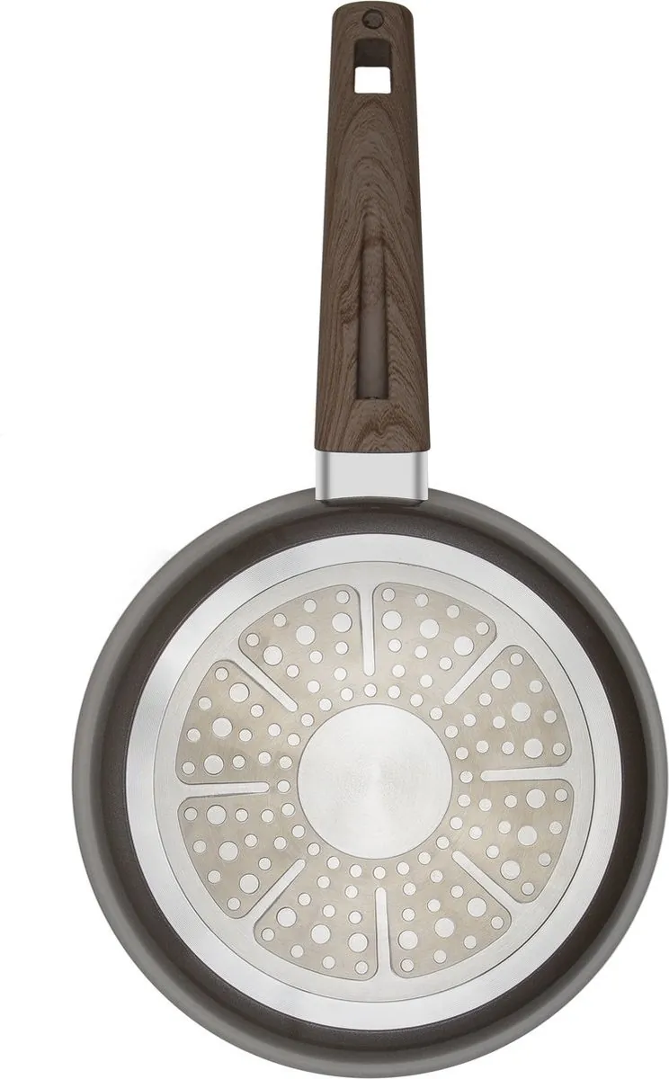 De Vela antiaanbakpan heeft niet alleen een praktische, maar ook een strakke ergonomische handgreep met een houteffect, waardoor het koken een plezier wordt in plaats van een karwei. De buitenkant van de pan is afgewerkt in een prachtige bronsglans, terwijl de binnenkant perfect wordt aangevuld met een zilveren en roze gemarmerde antiaanbaklaag om te voorkomen dat voedsel aan de pan blijft plakken. Bovendien is de pan voorzien van een handig ophangsysteem, waardoor u uw kostbare werkruimte in de keuken op de best mogelijke manier kunt organiseren en netjes kunt houden.