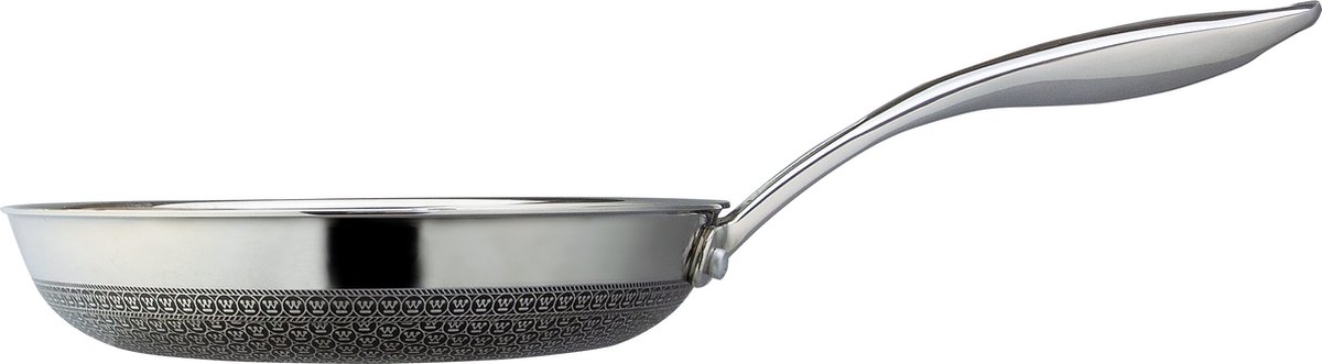 De pan is gemaakt met een Try-ply constructie van hoogwaardig materiaal dat warmte snel en gelijkmatig verdeelt, wat resulteert in een perfecte garing van je gerechten. De pan heeft een antiaanbaklaag, waardoor het eten niet vast blijft zitten en de pan gemakkelijk schoon te maken is. Ook is de pan voorzien coating zodat uw anti-aanbaklaag niet beschadigd, zelfs als u met metalen kookgerei kookt.