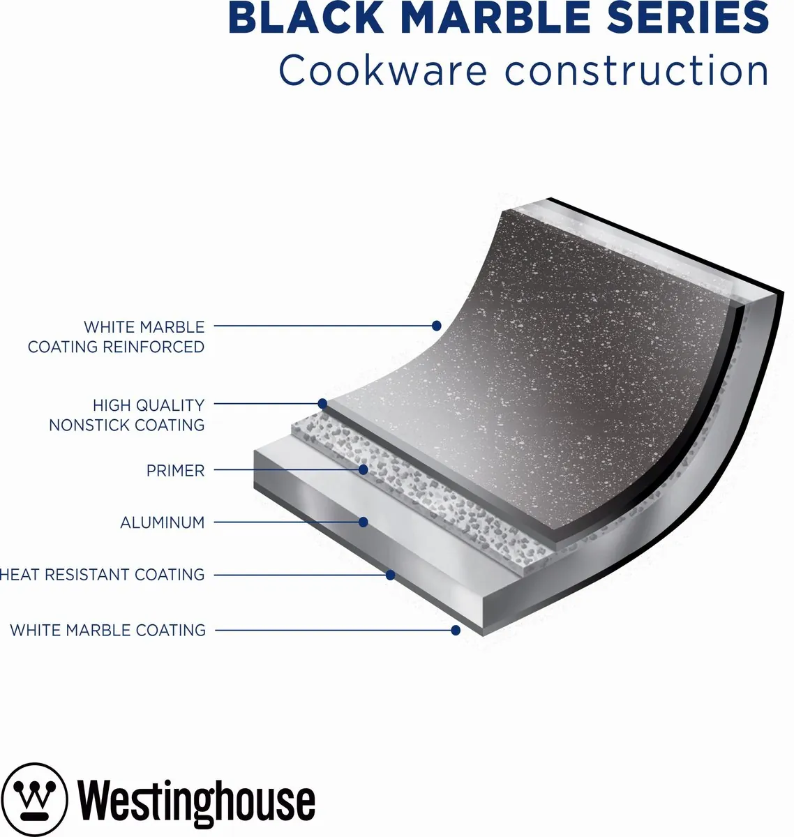 De pannen van Westinghouse zijn geschikt voor alle warmtebronnen inclusief inductie. De bodem bestaat uit drie versterkte lagen en is afgewerkt met een extra versterkte toplaag. Dit zorgt voor een snelle opwarming en gelijkmatige warmteverdeling over de hele bodem waardoor je een mooi egaal bakresultaat krijgt.