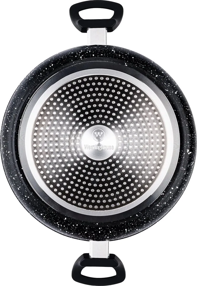 De Westinghouse Zwart Marmer Hapjespan 28cm mag niet ontbreken aan jouw pannencollectie. De hapjespan is ideaal voor het bereiden van bijvoorbeeld eenpansgerechten, een lekkere risotto, paella of een heerlijke pastasaus. De pan is gemaakt uit aluminium en licht in gewicht. Zo verplaats je de hapjespan gemakkelijk van de warmtebron rechtstreeks naar de tafel.