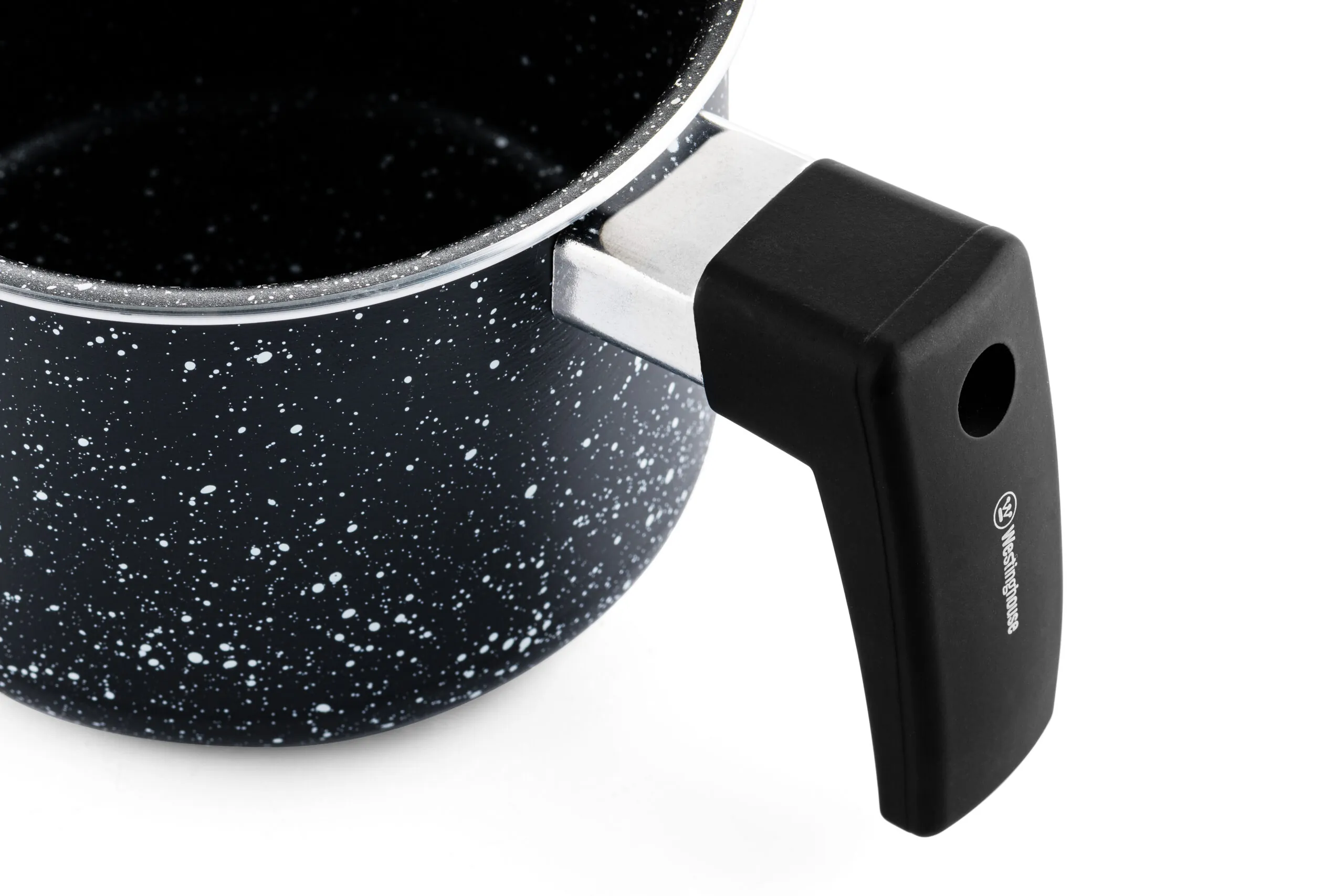 De melkpannen van Westinghouse bieden een krasbestendige zwarte marmeren anti-aanbaklaag, gelijkmatige warmteverdeling en zijn ook nog eens vaatwasserbestendig. Ideaal voor het bereiden van melk, soepen, pap en sauzen. Een praktische en stijlvolle toevoeging aan iedere keuken.