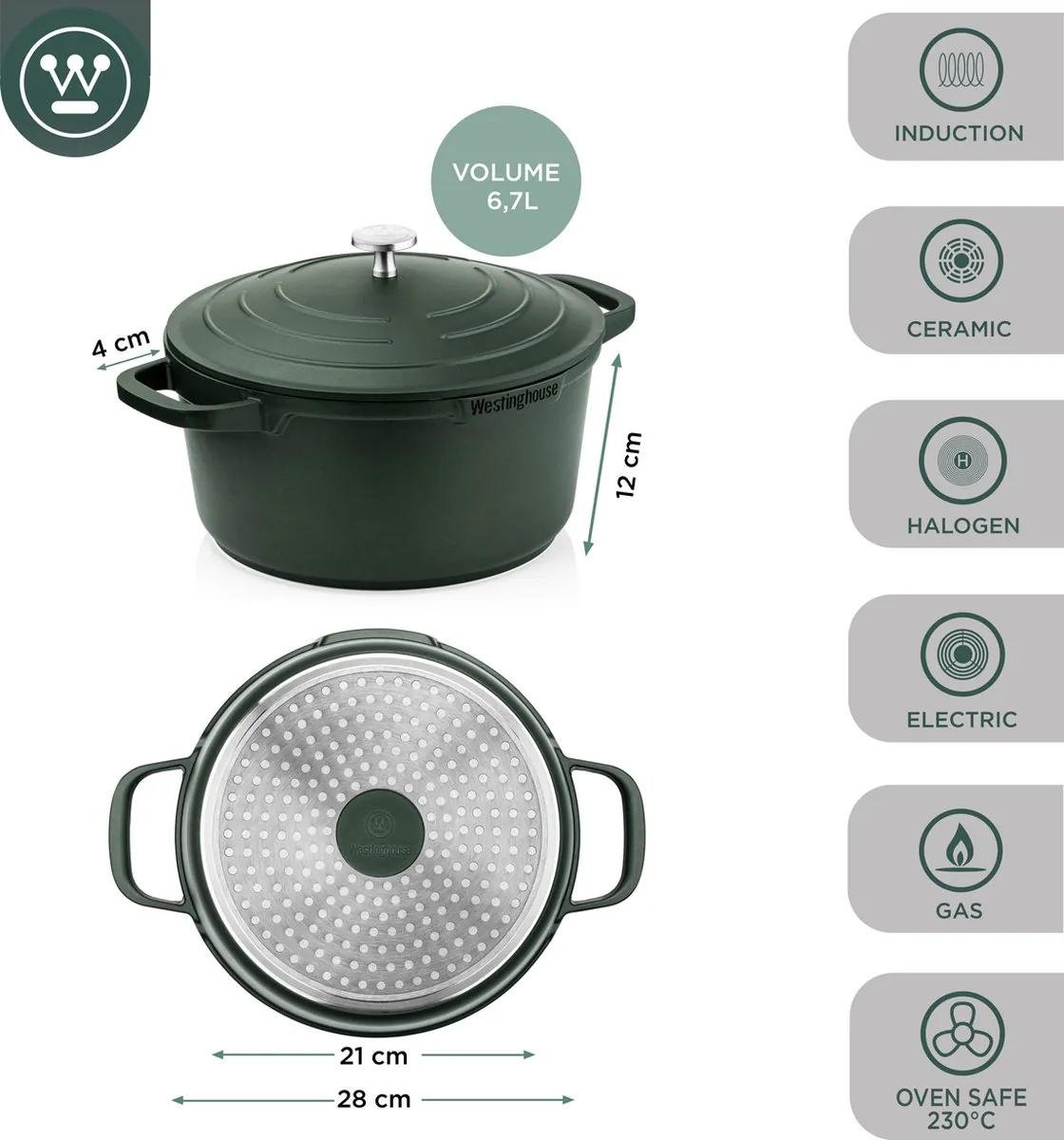Bij deze pannenset van Westinghouse maakt het niet uit wat voor fornuis of oven je hebt. De pannen van de Westinghouse Performance Series Cookware zijn namelijk geschikt voor de gaskookplaat, elektrische kookplaat, keramische kookplaat, inductiekookplaat en de halogeen kookplaat. Daarnaast kunnen de pannen in elk soort oven tot 220 Celsius, van bakoven tot heteluchtoven en van combi-oven tot stoomoven.