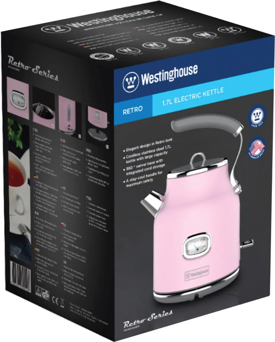 De Westinghouse Waterkoker heeft een retro uitstraling, met alle functies van een waterkoker uit dit tijdperk. De waterkoker is 360 graden draaibaar op het basisstation voor comfortabel optillen en neerzetten.