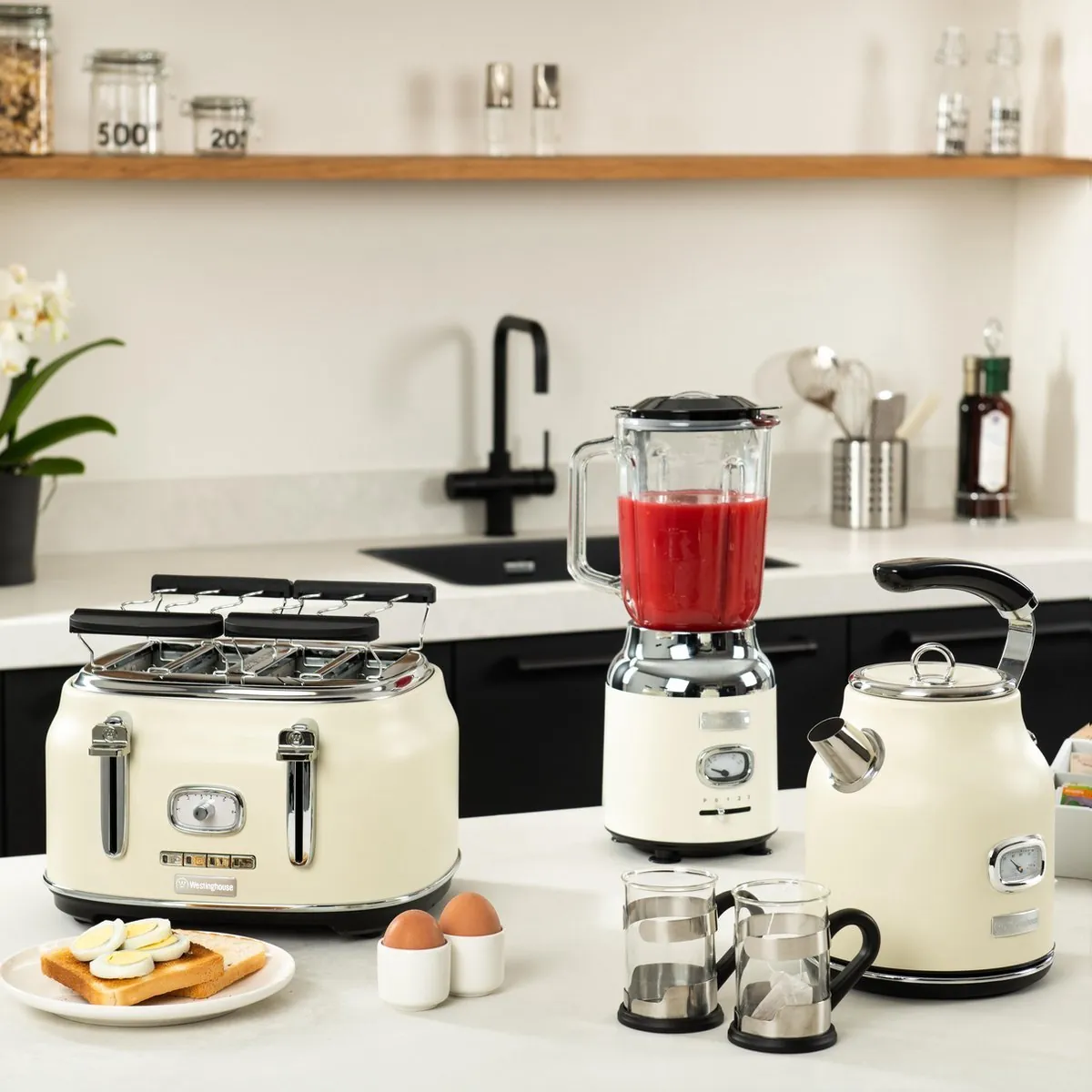 Ervaar een keukenrevolutie met onze Westinghouse Retro All-Inclusive Keukenapparatuur Bundel! Deze buitengewone set bevat de volledige serie: Retro Handmixer, staafmixer, blender, 2-slice broodrooster en koffiezetapparaat. Geniet van het gemak van één pakket voor een prijs van slechts €299,95, in plaats van €366,70. Deze exclusieve aanbieding geeft je niet alleen de complete Retro Westinghouse ervaring, maar bespaart je ook geld. Maak je keuken compleet en laat het vintage stijlvol schitteren!