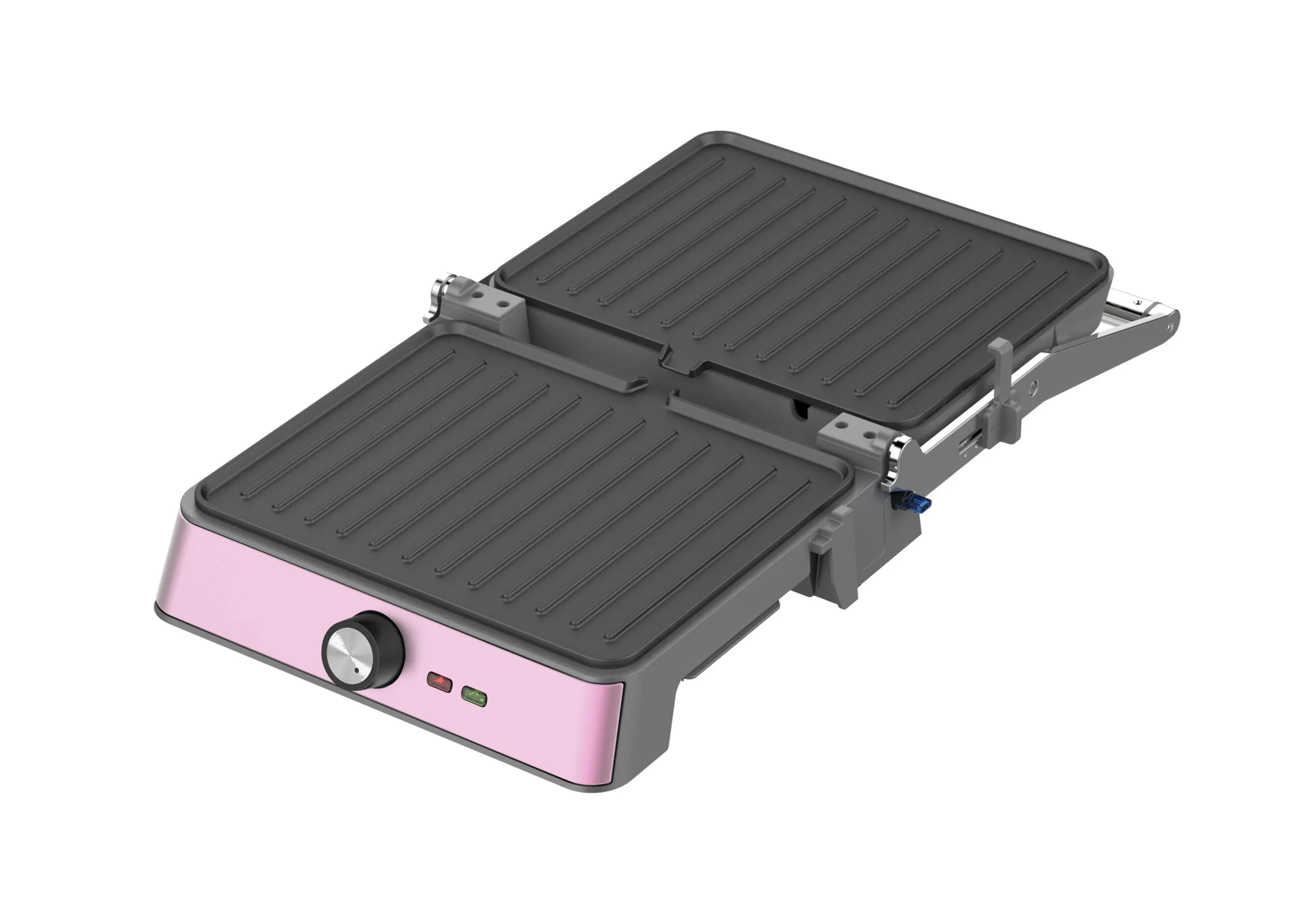 De dubbelzijdige grill zorgt ervoor dat je voedsel aan beide kanten tegelijk wordt gegrild, wat de kooktijd aanzienlijk verkort. Dit maakt het niet alleen efficiënter, maar zorgt er ook voor dat gerechten gelijkmatig worden bereid, wat ideaal is voor het grillen van vlees, groenten en panini's.