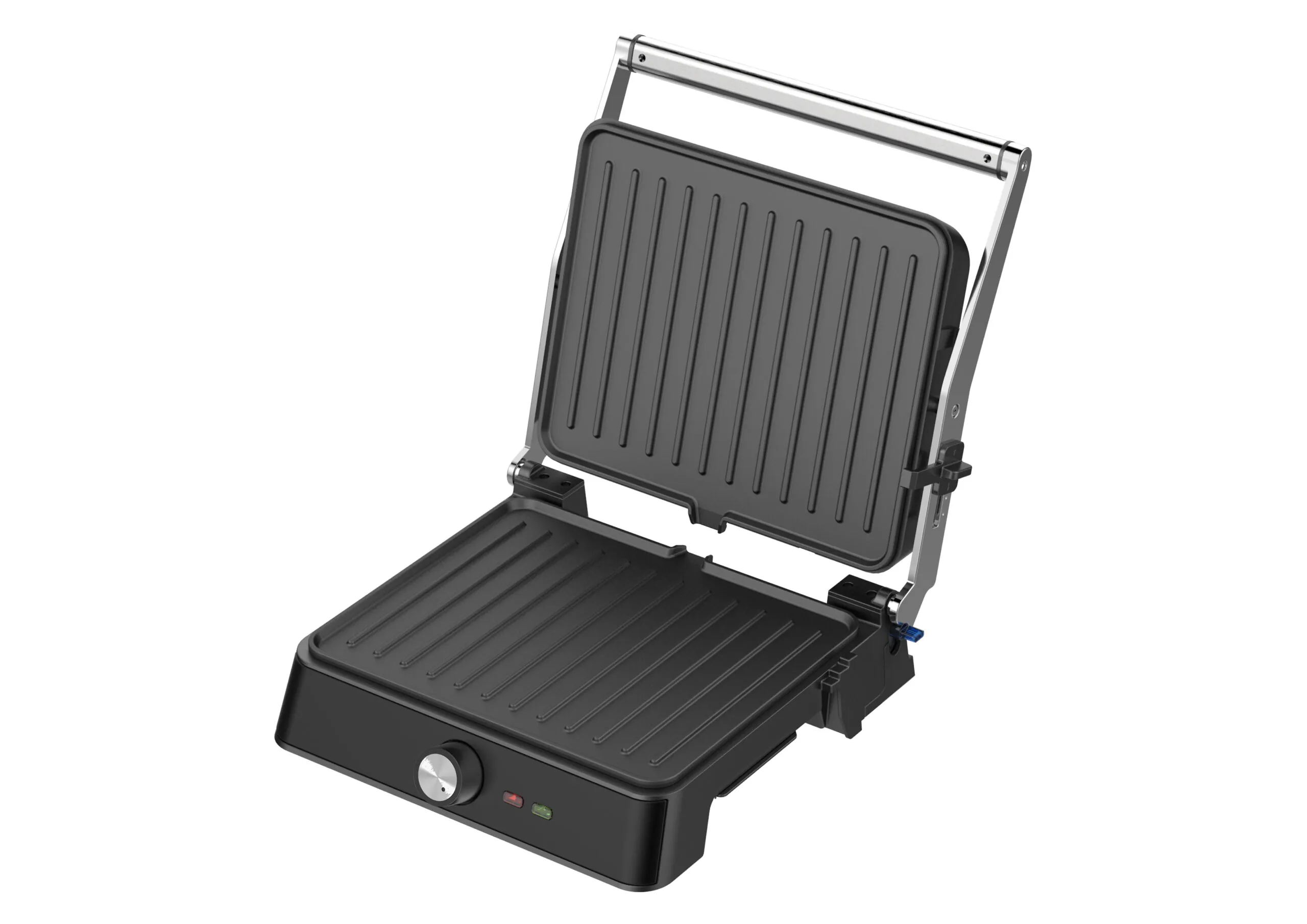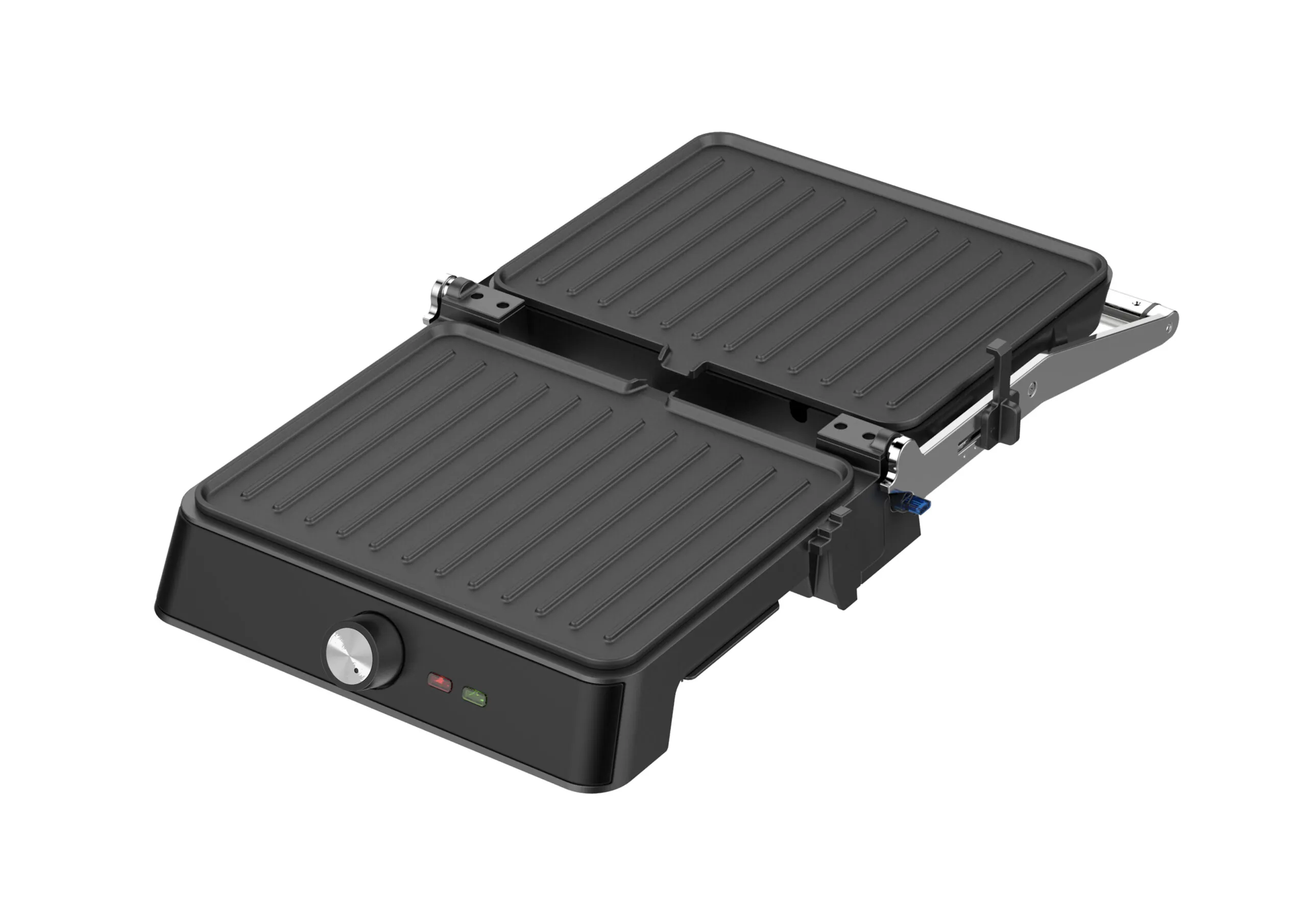 Met de instelbare temperatuurregeling kun je de warmte precies afstemmen op elk gerecht. Of je nu een malse steak, gegrilde groenten of een knapperige tosti maakt, je behoudt volledige controle over het kookproces voor perfectie op je bord.