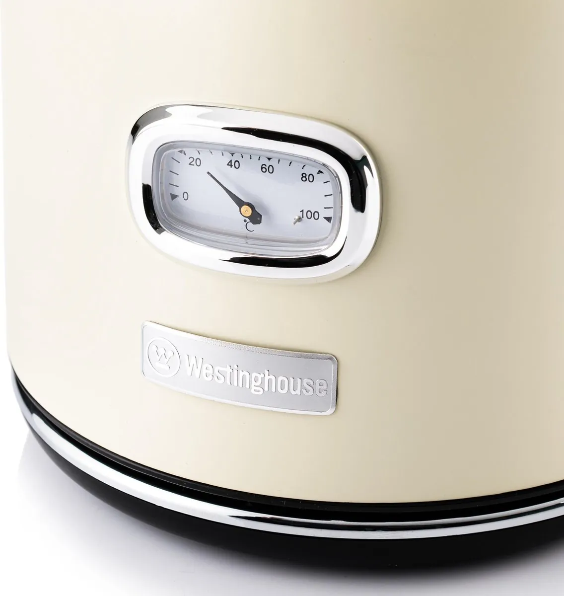Deze waterkoker van Westinghouse staat met haar stijlvolle retro design prachtig op jouw aanrecht en wil je zeker niet in de keukenkastjes verstoppen! Opvallend aan dit type waterkokers van Westinghouse is het mooie uiterlijk van een retro fluitketel, inclusief ferme handgreep en tuit. Retro ontwerp, moderne technologie!
