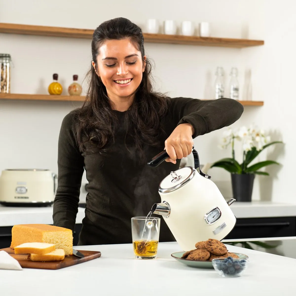 In deze elektrische waterkokers kan maar liefst 1,7 liter water, dus ruim voldoende ter voorbereiding van het koken van rijst, pasta, eieren of ander eten waarbij er water moet worden gekookt. Of, natuurlijk: om een heerlijk kopje thee te zetten. Er kunnen maar liefst 7 koppen thee uit deze waterkoker. Ideaal voor een doe-het-zelf high tea thuis of op verjaardagen met veel visite.